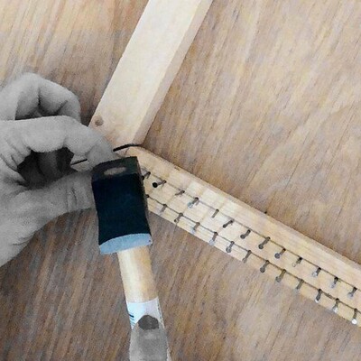 - Натяжение нити-основы на раму
